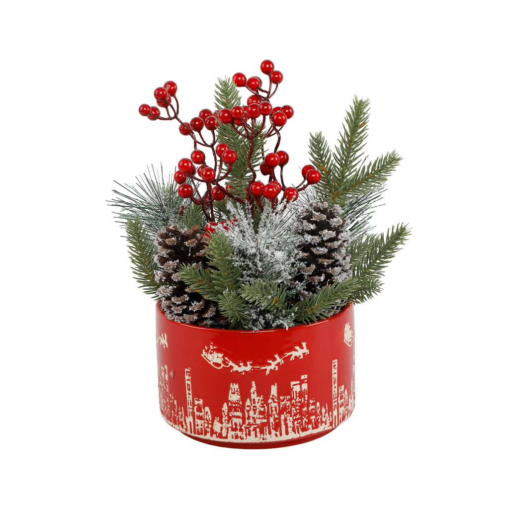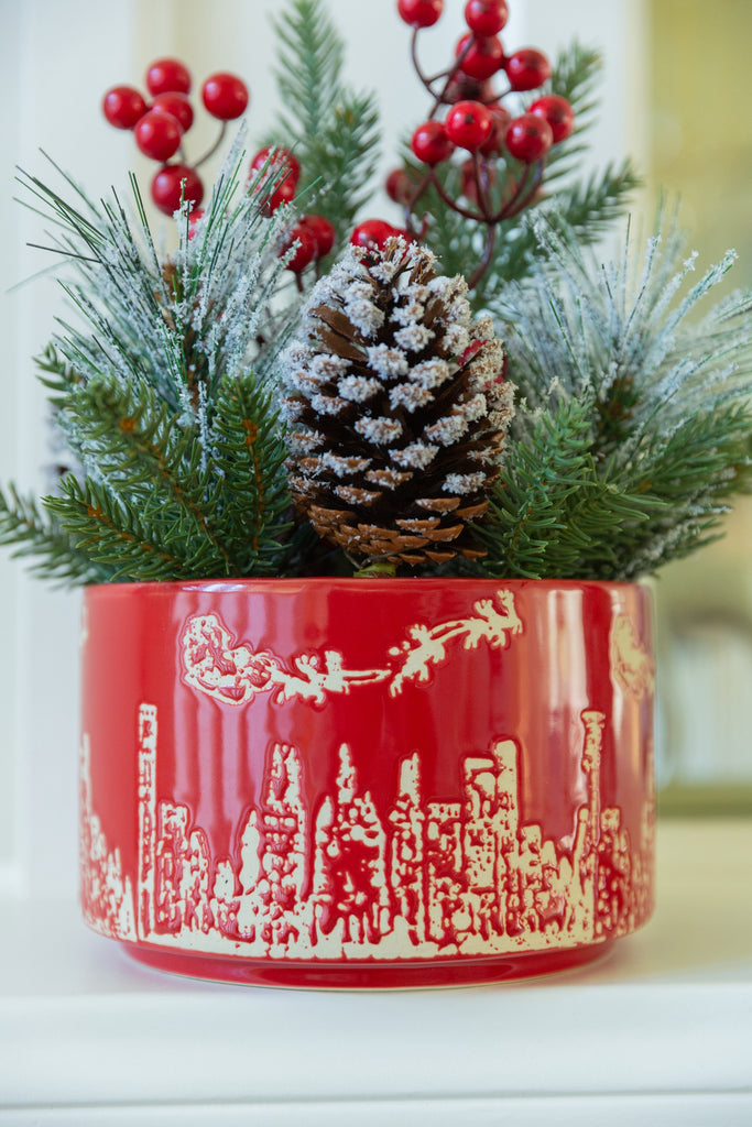 Christmas is here! Adorn your home or workspace with this adorable Christmas Arrangement in Red Cityscape Ceramic Pot. Made of Ceramic and painted white and Red, this 9.75" x 9.75" x 12" Christmas Arrangement will add a bit of Holiday Cheer to your living space. Christmas arrangements are included, so you never have to worry about watering real plants again! Beauty without the pain of caring for real plants. We always strive to make your life easier so you that you can have more time for the important things in life. (Hand-crafted by Artisans; Material: Ceramic, Assorted Christmas arrangements, Plastic; Size: 9.75" x 9.75" x 12"; Color: White, Red, Black, Green, Gold). ** No drainage hole, for Indoor Use Only.