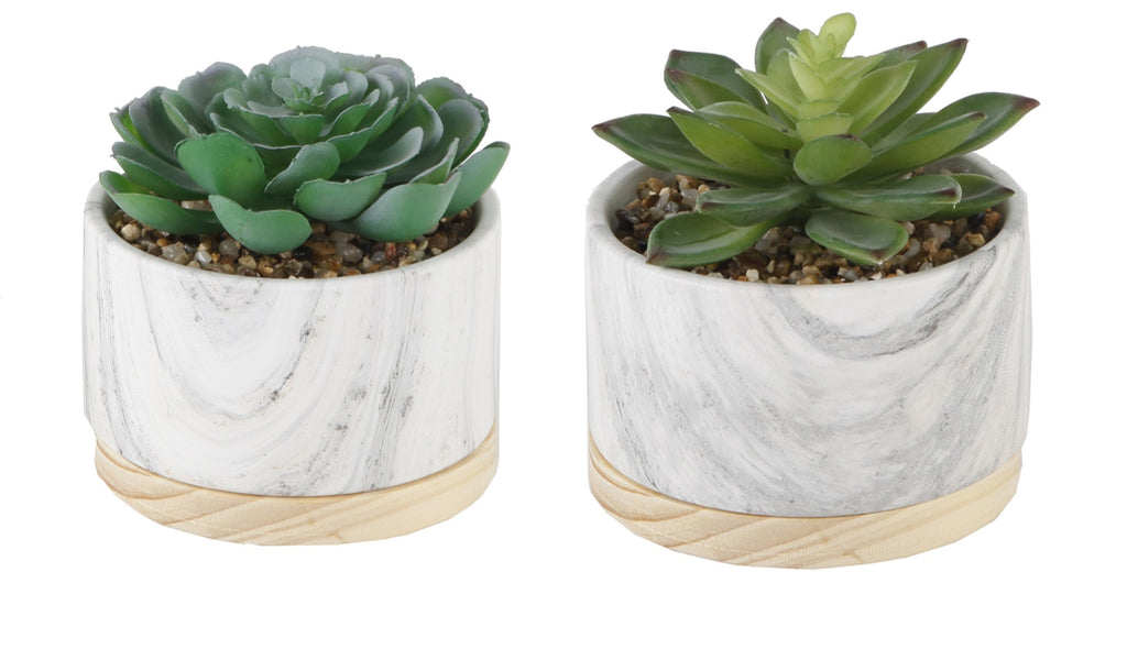 SET OF 2 SUCCULENT IN MARBEL W/ WOOD BASE