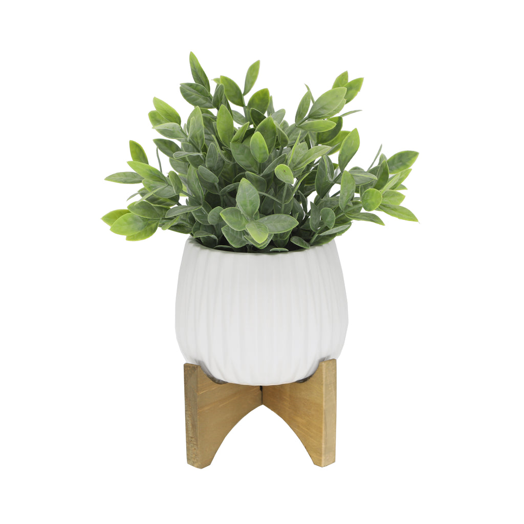 Stand by me! Place this faux Tea Leaf Plant in a RIDGE pattern planter anywhere in your home to create an indoor Oasis. Hand-crafted by Artisans, our ceramic planter will help upgrade your plant game in style. Made of ceramic and painted white with chic RIDGE pattern, this 6.5" x 6.5" x 10.75" tabletop planter will add a bit of chic nature to your living space. Faux Tea Leaf are included, so you never have to worry about watering real plants again! Buy a few at a time, so you can start your own little Garden indoors! (Material: Ceramic, Wood, Plastic). ** No drainage hole, for Indoor Use Only.