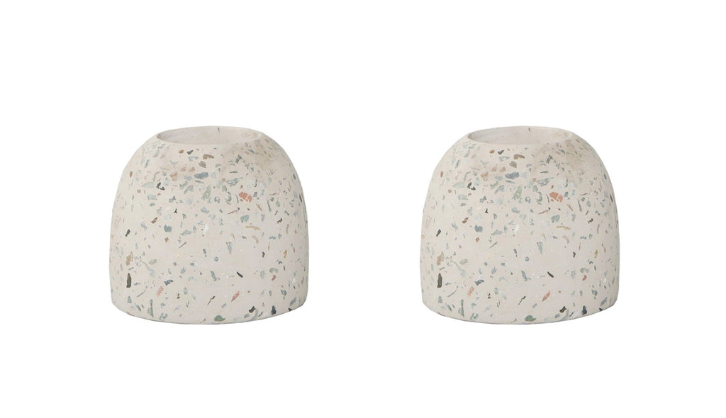 Lovely Décor indoor planters. Measurement(inch): 3.625 x 3.625 x 3. Intersize(inch): 1.75x1.75x2.5. Capacity(oz):8.8. Material: Cement. Color: ** No drainage hole, for Indoor use only.