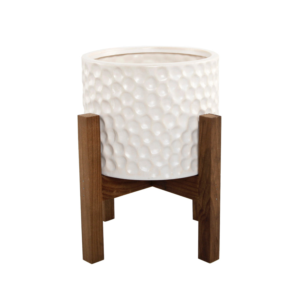 5.5" Beehive Ceramic Planter on Wood Stand,Cream