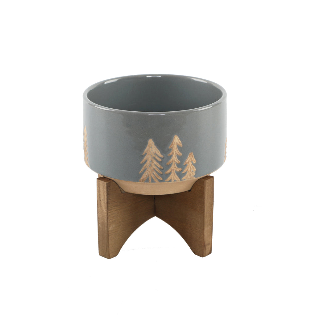 Lovely Décor indoor planters. Measurement(inch): 4.25 x 4.25 x 4.75. Intersize(inch): 3.875x3.875x2.375. Capacity(oz):37.4. Material: Ceramic,Wood. Color: Grey** No drainage hole, for Indoor use only.