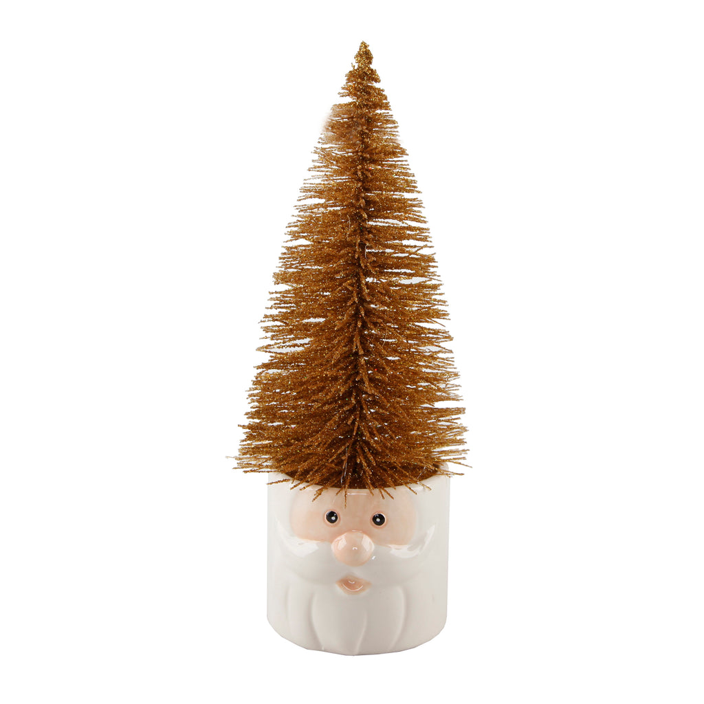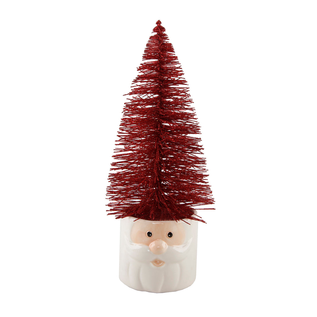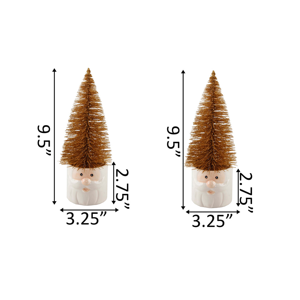| Christmas is here! Adorn your home or workspace with this adorable Set of Two Mini Christmas Trees in Ceramic Santa Pot. Made of Ceramic and painted White and Peach with a Red tree, this 7" x 4" x 11" Tree in Santa Pot will add a bit of Holiday Cheer to your living space. Faux Christmas trees are included, so you never have to worry about watering real plants again! Beauty without the pain of caring for real plants. We always strive to make your life easier so you that you can have more time for the important things in life. (Hand-crafted by Artisans; Material: Ceramic, Plastic; Size: 7" x 4" x 11" ; Color: White, Peach, Red, Glitter). |