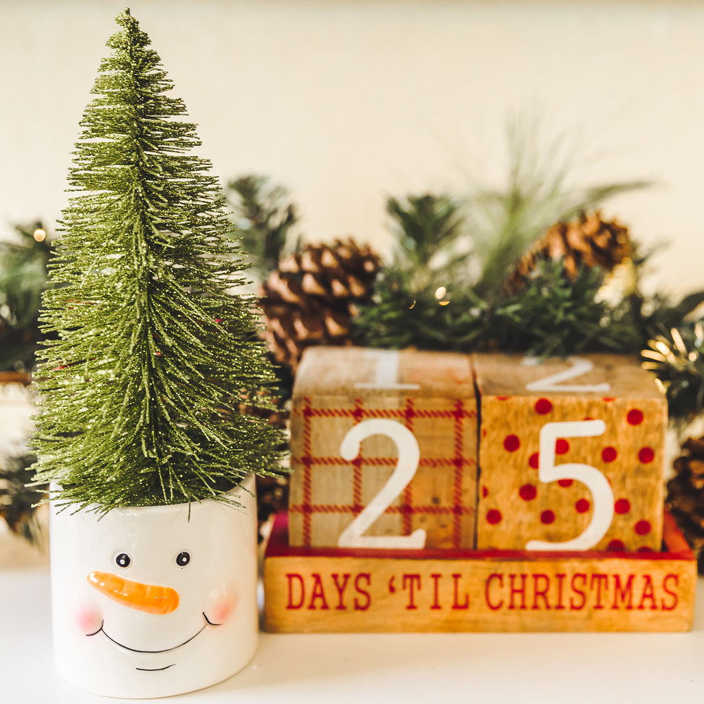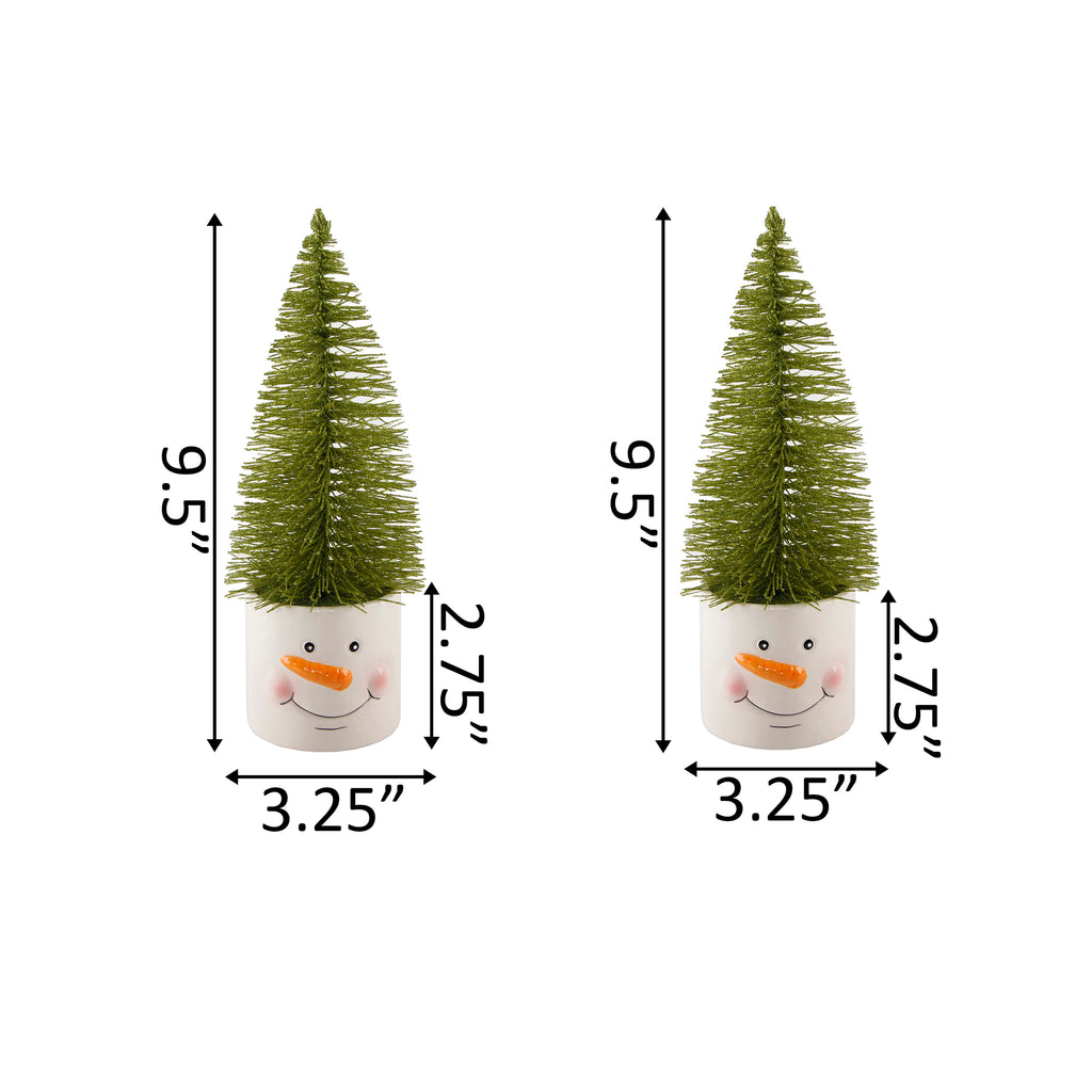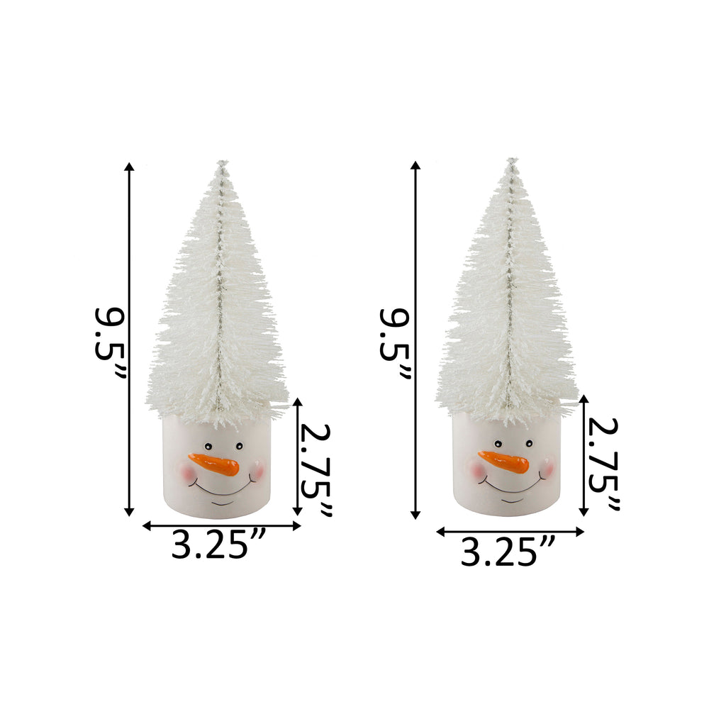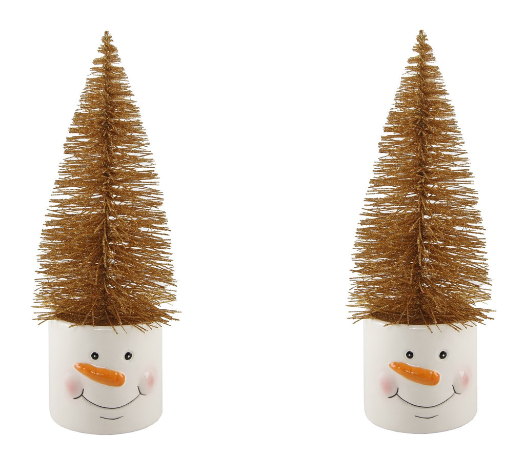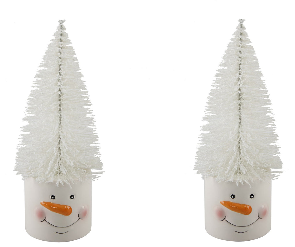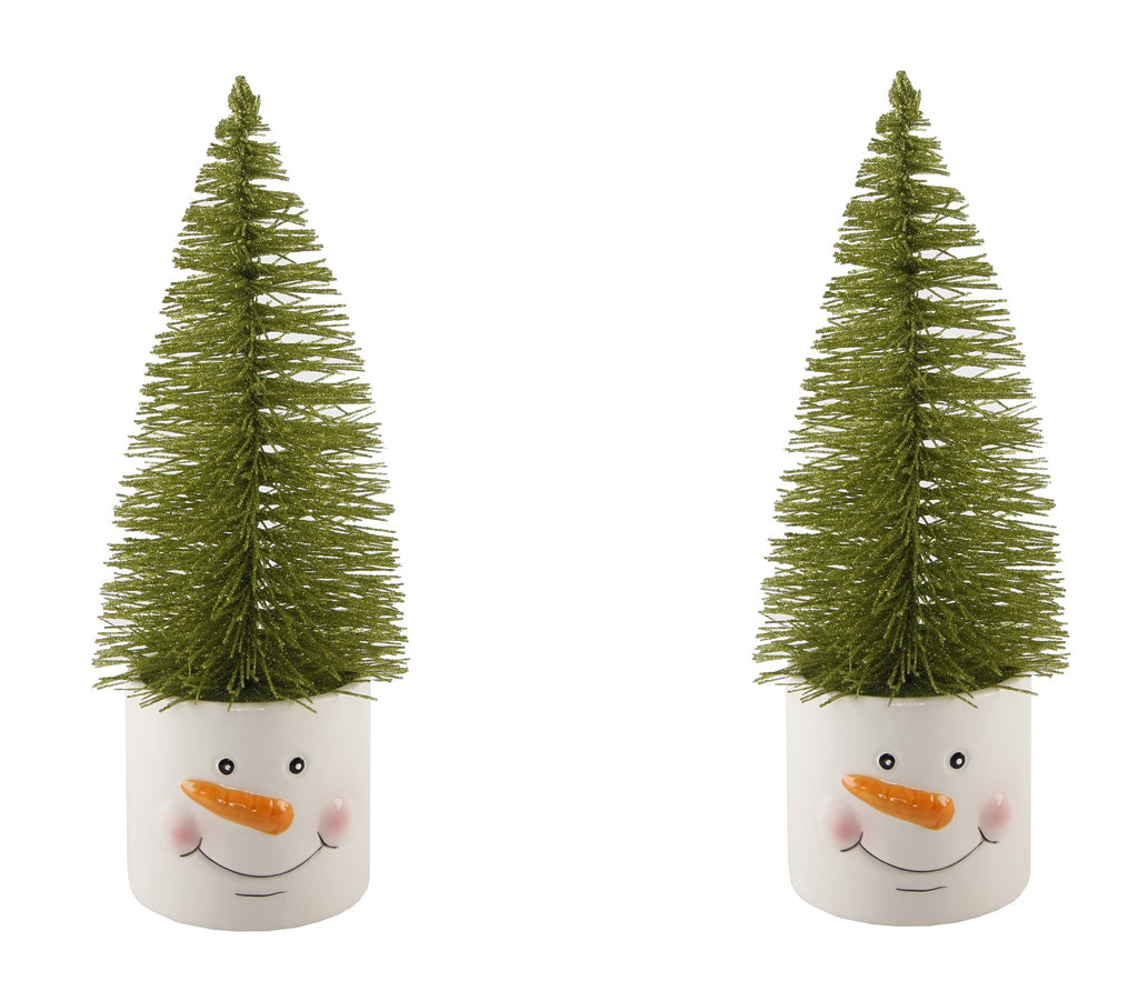 Set of 2 Mini 11" H Christmas Trees in Ceramic Snowman