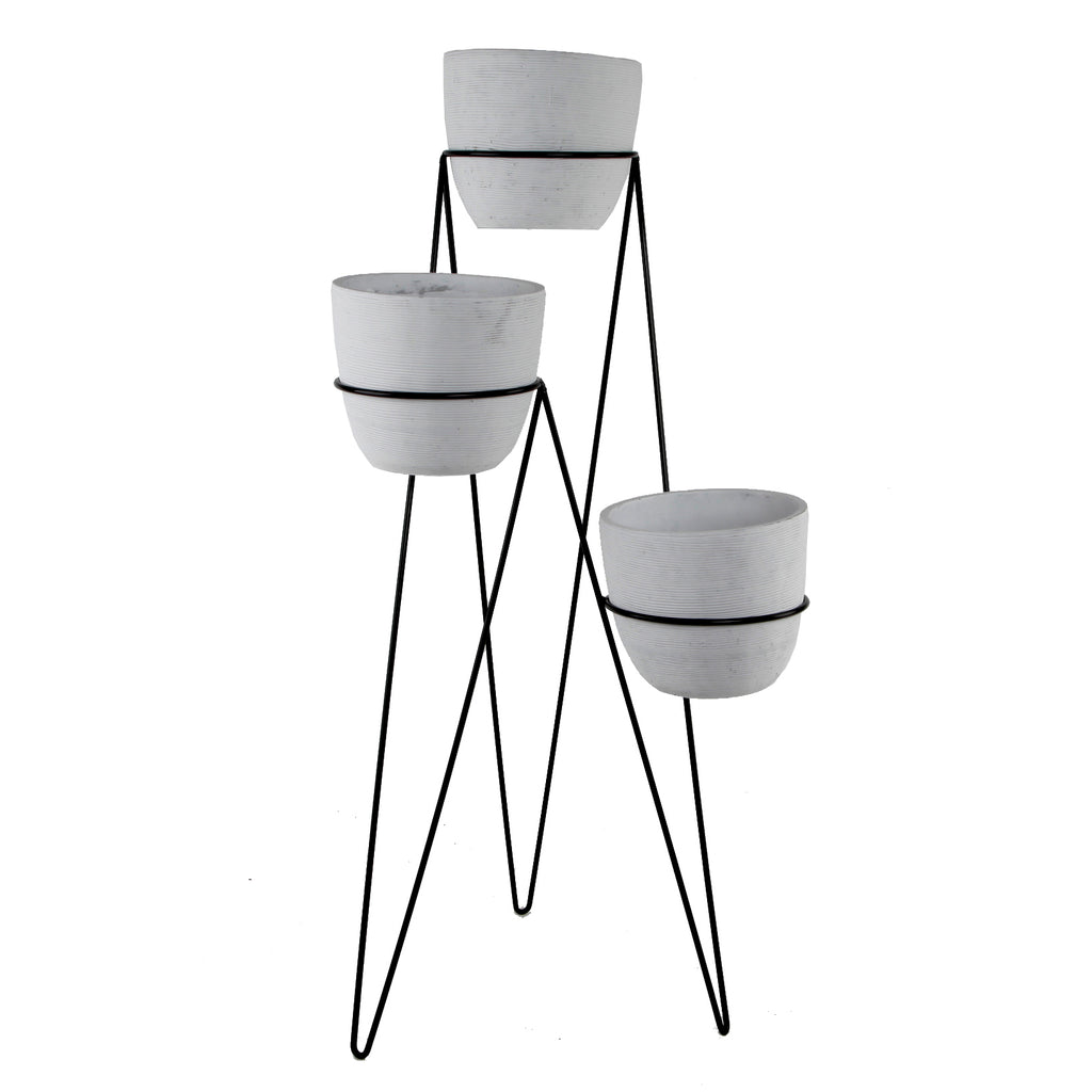 Stand by me! Place this 3-Tier Lava White Cement Pots on Hair Pin Leg Stand anywhere in your home to create an indoor Oasis. Hand-crafted by Artisans, our Cement planter on Hair Pin stand will help upgrade your plant game in style. Made of Cement and white paint, this 15" x 15" x 36" indoor planter will add a bit of chic nature to your living space. The perfect planter for planting succulents, terrariums, and indoor house plants. There is no drainage hole, so no spill and no mess! We always strive to make your life easier so you that you can have more time for the important things in life. Buy a few at a time, so you can start a little Indoor Garden! (Hand-crafted by Artisans; Material: Cement, Metal; Size: 15" x 15" x 36"; Color: White, Black-stand). ** No drainage hole, for Indoor use only.