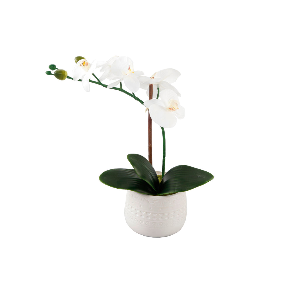 12" Real-touch orchid in WH Mayan ceramic pot,E PACK