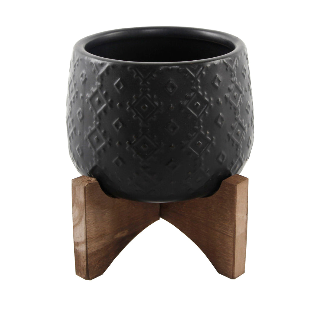 Lovely Décor indoor planters. Measurement(inch): 4.75 x 4.75 x 4.5. Intersize(inch): 3x3x2.75. Capacity(oz):37.5. Material: Ceramic,Wood,Glue. Color: Matte Black** No drainage hole, for Indoor use only.