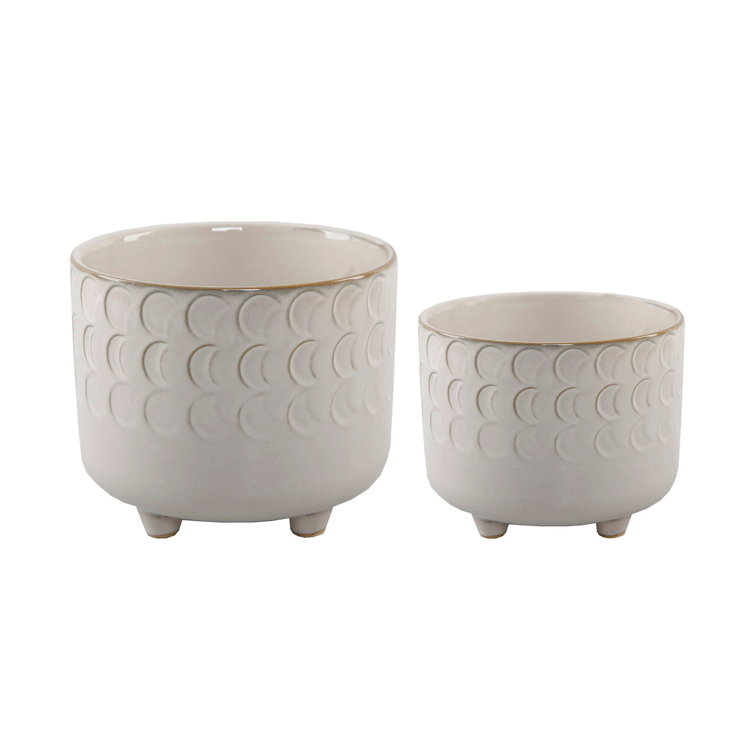 6IN & 4.75IN SMALL MOON PHASE FOOTED PLANTER,SET OF 2, IVORY.